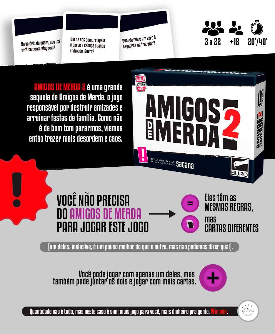 Pessoa ressentida típica que jogou “Amigos de Merda” e se animou. Chegou a hora de jogar Amigos de Merda 2!