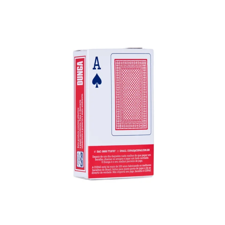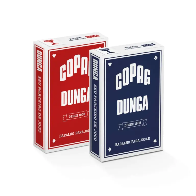 Fabricado pela Copag, referência mundial em baralhos, o Dunga é sinônimo de durabilidade e bom custo-benefício. Suas cartas têm acabamento que garante deslize suave e resistência ao uso frequente.