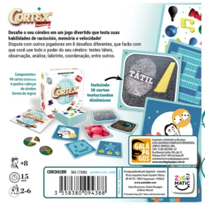 Cortex Challenge 2 é o jogo ideal para reunir os amigos e a família em volta da mesa e colocar todo mundo pra usar 100% do cérebro (ou 50, ou 30, tanto faz). Além disso, é sucesso garantido com adultos que querem testar suas capacidades cognitivas e também com crianças, desenvolvendo a memória e o raciocínio dos pequenos.