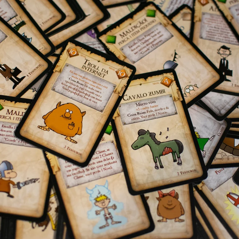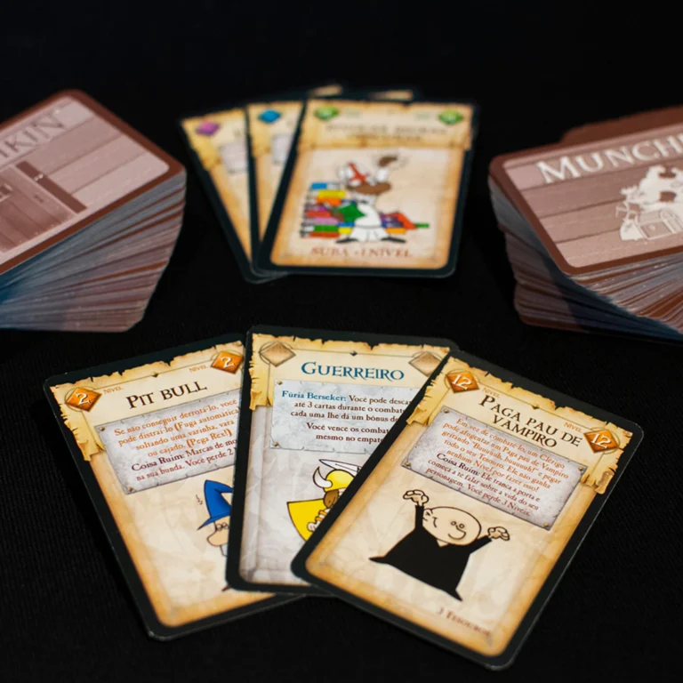 Munchkin é um jogo de cartas divertido e estratégico, perfeito para amantes de RPG que gostam de aventura e intrigas.