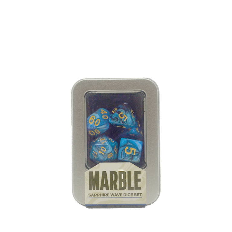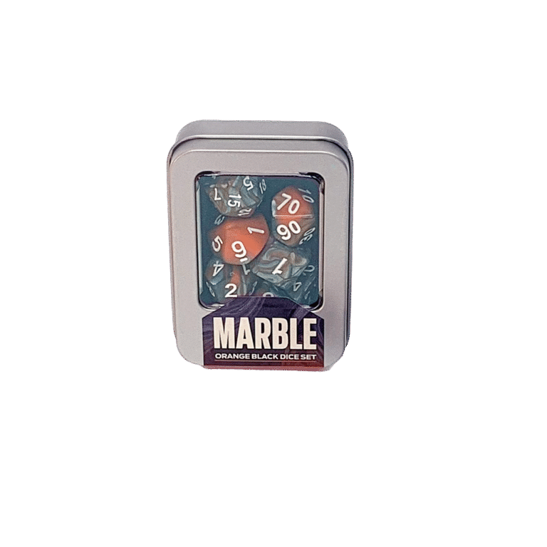 Kit de Dados Marble é a linha da Buró que une praticidade e estilo. Cada kit traz os 7 dados fundamentais para qualquer sistema de RPG — de Dungeons & Dragons a Tormenta, de Old Dragon a Call of Cthulhu. O acabamento marmorizado dá um visual sofisticado, com cores que variam levemente de uma peça para outra (o que torna cada conjunto único).