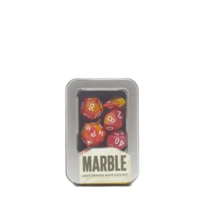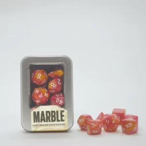 Kit de dados marmorizados da linha MARBLE WAVE na cor LARANJA CLARO contendo os principais dados para jogar os mais conhecidos sistemas de RPG.
