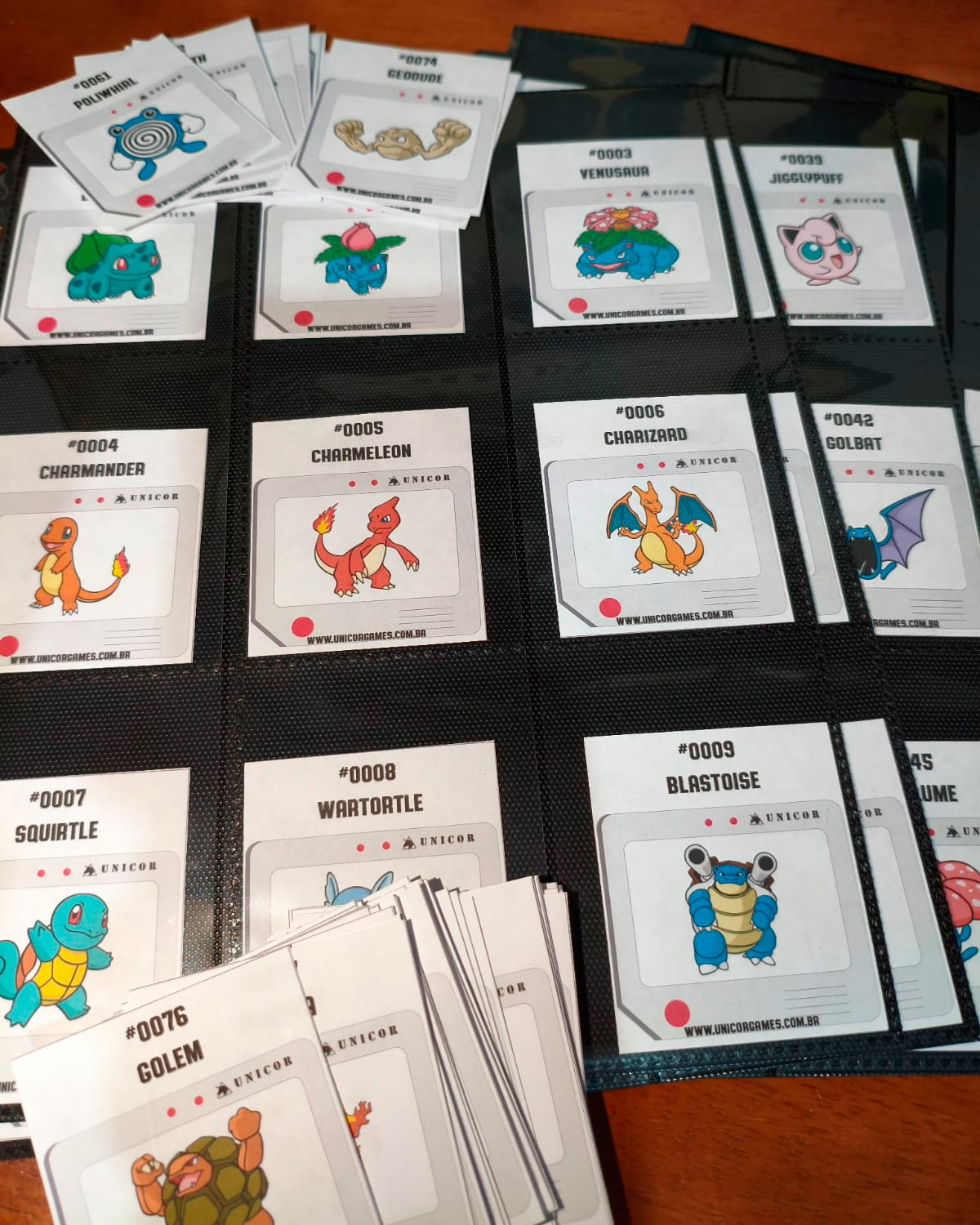Páginas de impressão de cartas pokémon, para marcar os locais de cada carta no fichário.