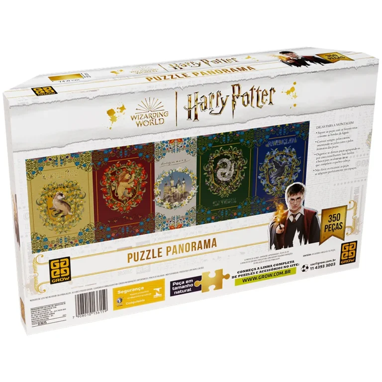 Relembre a mágica do mundo bruxo nesse íncrivel quebra-cabeça panorâmico de 350 peças de Harry Potter. Hogwarts é dividida em quatro Casas: Grifinória, Sonserina, Corvinal e Lufa-Lufa. Você pode decorar sua casa com elas nesse incrível quebra-cabeça.