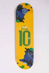 O Shape CBF Camisa 10 Brasil da Chronic foi desenvolvido com matéria-prima de altíssima qualidade, utilizada nos melhores shapes nacionais. Produzido em marfim com 7 folhas, oferece resistência e durabilidade ideais para quem busca evolução no skate.